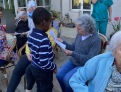 des chocolats, des gaufres pour le gouter en plein air, des enfants du centre de loisir qui ont le sourire et adorent venir passer des moments avec nos résidents... tout était réuni pour la réussite de notre chasse aux oeufs annuelle. les résidents étaient aux anges et en plus le temps était de la partie